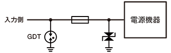 図7. 基板実装での電源機器サージ対策回路とGDT